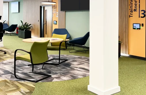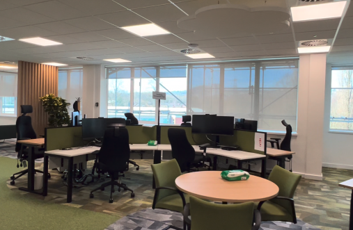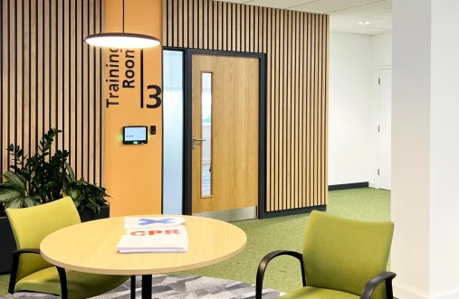 Sigma Architects were brought on board to develop the interior design for the refurbishment of over 41,000 sqft of office and ancillary space within this three-storey property on behalf of DHU Healthcare. The works included a comprehensive Cat B fit out over three floors to provide training, meeting room and office facilities. Works also included formation of a new canteen and breakout space, re-modelling of the WCs and shower facilities, and refurbishment of the reception area including a brand new entrance vestibule. Complete replacements were undertaken to the HVAC systems to ensure comfor and we also continued to improve sustainability by installing EV chargers to the car park. Working closely with the contractor, our role was to create a design that balanced the client's needs and preferences with building regulations and practical considerations. We overhauled previous proposals to develop a scheme that truly reflects DHU's unique identity and ambitions, helping them to showcase what sets them apart.