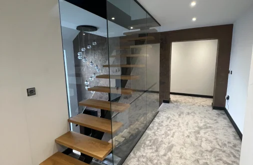 This house is a fine example of a stunning transformation. Originally a 1930’s detached house, we were asked to re-use the footprint to create a stunning home which has been tailored to the personal requirements of the owner. The home is located on a steep hill. This brings the challenge of how to incorporate the changing levels in the design.