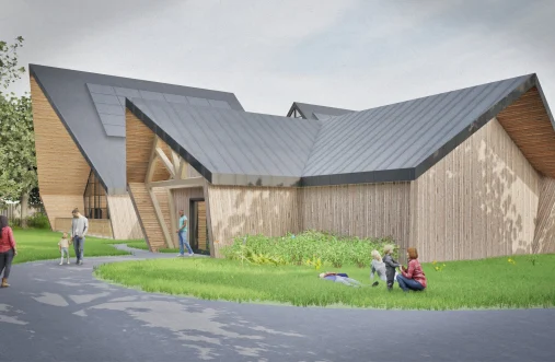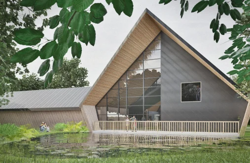 The design responds directly to the character of its natural surroundings, both in form and materiality. The scheme provides a main meeting hall, additional secondary spaces, a private external courtyard, and the necessary ancillary accommodation to support a flexible, multi-use community facility.